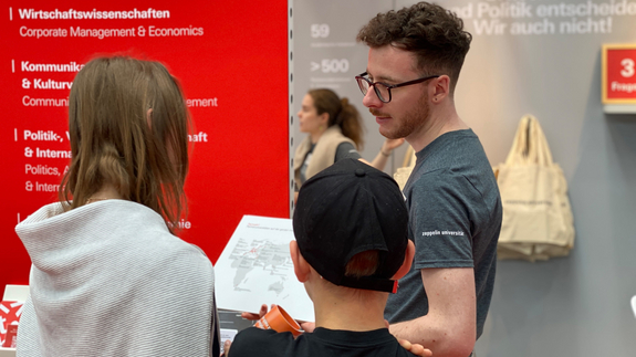 An unserem Stand erfahren Sie mehr über das Studienangebot der Zeppelin Universität, unsere interdisziplinären Studiengänge und individuelle Entfaltung.
