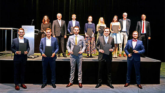 ZU students were again honored with awards for outstanding theses by the Zeppelin University Society (ZUG). Graduates Jasper Brüns and Mariana Patiño from the study program Corporate Management & Economics, Felicitas Amann and Desiree Oster from Communication and Cultural Management, Katharina Ebinger from Politics, Administration and International Relations as well as Nicolas Göller and Philipp Schana from Sociology, Politics and Economics were awarded the "Best Bachelor Thesis Award", which is endowed with 500 euros. The "Best Master Thesis Award", also endowed with 500 euros, went to Fabian Stützle, Niklas Friedrich and Victor Trofinov from the study program Corporate Management & Economics, Noah Vinzens and Hannah Schiffner from Communication and Cultural Management, and Jens Mößle from Politics, Administration and International Relations. The awards were presented by ZUG board members Dr. Joachim Landkammer and Professor Julika Baumann Montecinos.